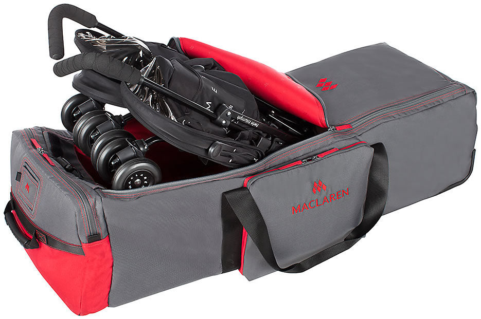 The roomy, sturdy Twin Buggy Locker from Maclaren makes storing and carrying one of our two-seat strollers a veritable snap for parents travelling with children.