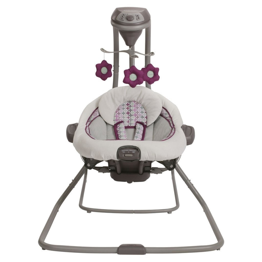 Graco DuetConnect LX Swing + Bouncer, Nyssa screenshot. Baby Jumpers & Swings directory of Baby Gear. Click to enlarge product image  Graco DuetConnect LX Swing + Bouncer, Nyssa - The Graco DuetConnect LX Swing + Bouncer is a unique swing that plays 10 melodies and five nature sounds with six speeds and two vibration settings.