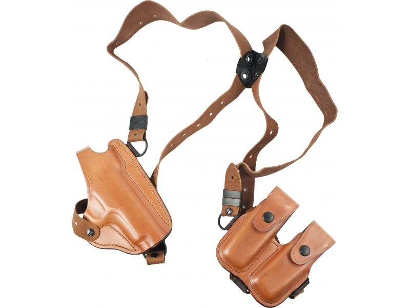 Bianchi X16 Shoulder Holster System (17248) -Tan - Featherweight - Slimline Design Provides For All Day Comfort And Concealability - Premium Full Grain Cowhide - Tie Downs Secure Holster And Offside Pouch To Belt - Strong And Contours To The Torso - Fits Chests Up To 48"