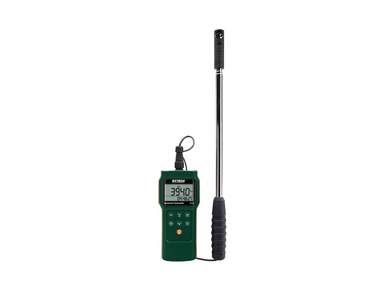 Extech AN340 CMM/CFM Anemometer/Psychrometer Datalogger - Telescoping 0.7 In. (18 mm) diameter vane sensor extends from 1 ft (0.3 m) up to 3.3 ft (1 m) easily fits into air vents. Measures Air Velocity/Volume, Temperature, Humidity, Wet Bulb, and Dew Point. User can store up to 12,000 readings for data...