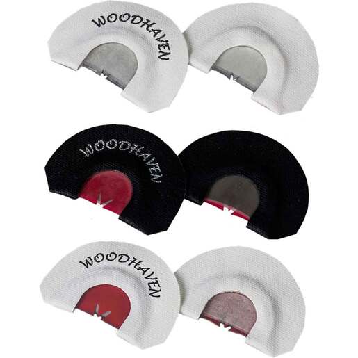 Woodhaven Wasp Nest Diaphragm Calls, 3-Pack (_Delete_) - The Wasp Nest Diaphragm Call Three-Pack is a series of WoodHaven's three wasp-type mouth calls, each with a v-cut design: Wasp, Red Wasp, and Black Wasp. These calls are perfect for cutting, raspy yelping, as well as early-morning throaty nasal sounds....