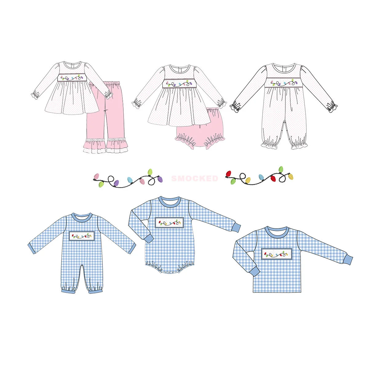 Children's pleated clothing wholesale baby and toddler clothing custom toddler and girl clothing sibling and Christmas print set  Read more