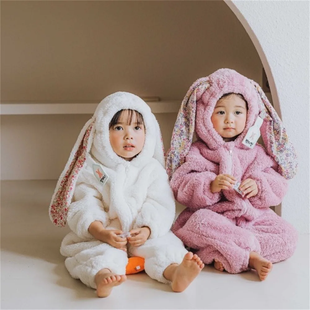 Spring Baby Girls Boys Rabbit Romper Newborn One-piece Jumpsuit Hooded Pajamas Boys Plush Homewear Outfits Baby Costume