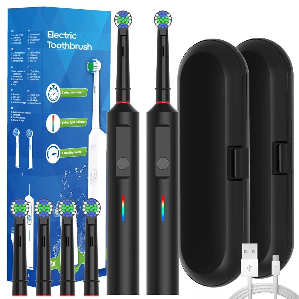 2x Smart Rotating Electric Toothbrush Set, Rechargeable Rotary Toothbrushes Compatible with Oral B Braun Replacement Brush Heads
