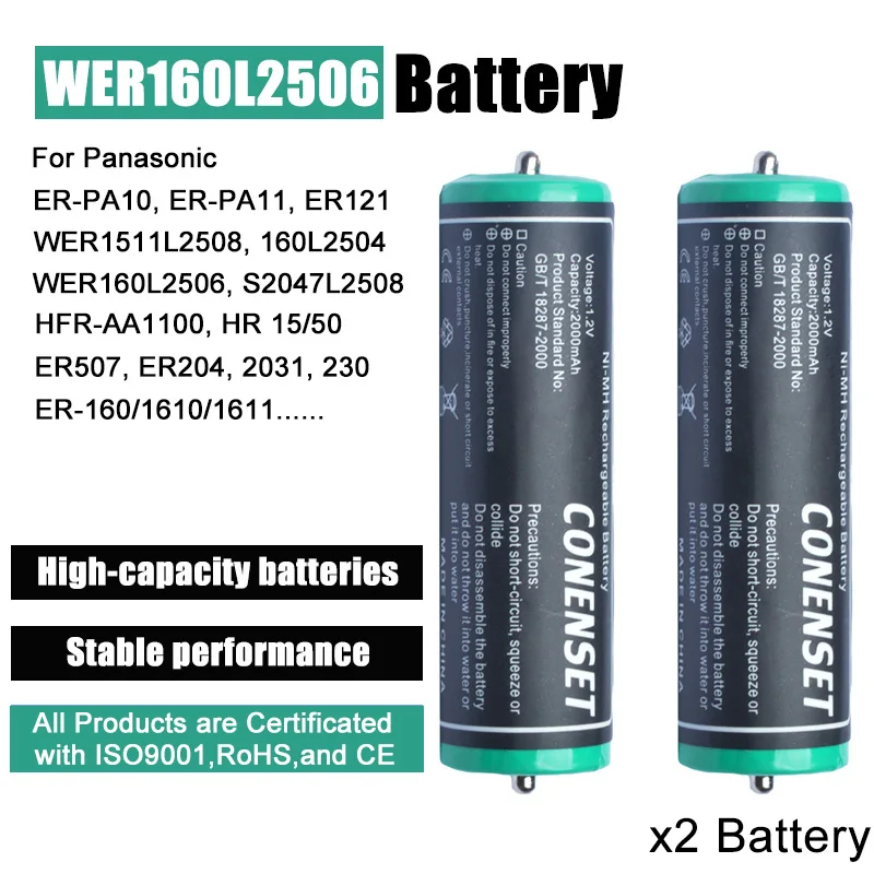 2 batteries, compatible with Braun Series 1, Series 3, SmartControl shavers, hair clippers (2000 mAh, battery 1.2 V, NiMH)