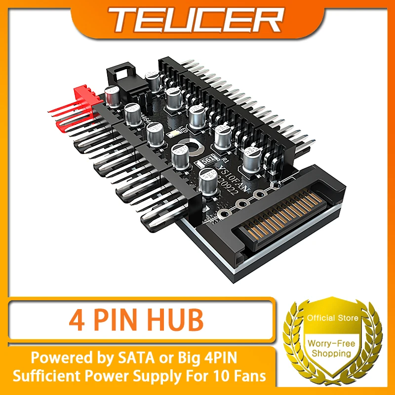 TEUCER 4PIN PC FAN HUB 1to10 PWM Power Hub Desktop Computer Case Fan Power Cable Expansion Splitter  Read more