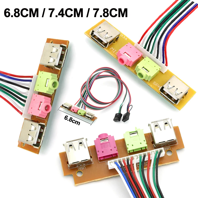 1pcs PC Computer Case 6.8/7.4/7.8cm Front Panel USB Audio Port Mic Earphone Cables USB 2.0 Plug Guard Extend Connectors 65CM  Read more