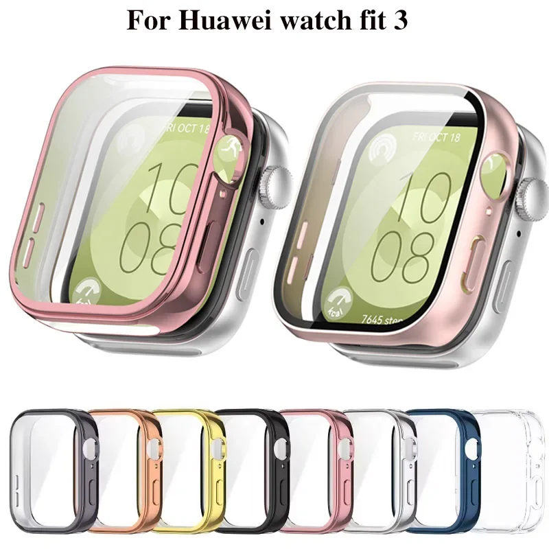 PC Case+Tempered Glass For Huawei watch fit 3 Active Full Cover Screen Protector Smartwatch Bumper Cleaning cotton