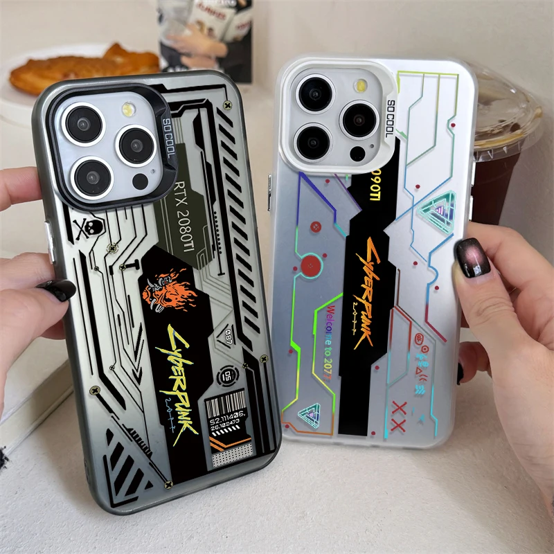 Fashion Anime C-Cyberpunks Plating PC Case for iPhone 17 Air 16 15 11 12 14 13 Pro Max XS X XR Plus 8 7 SE 2020 Shockproof Cover