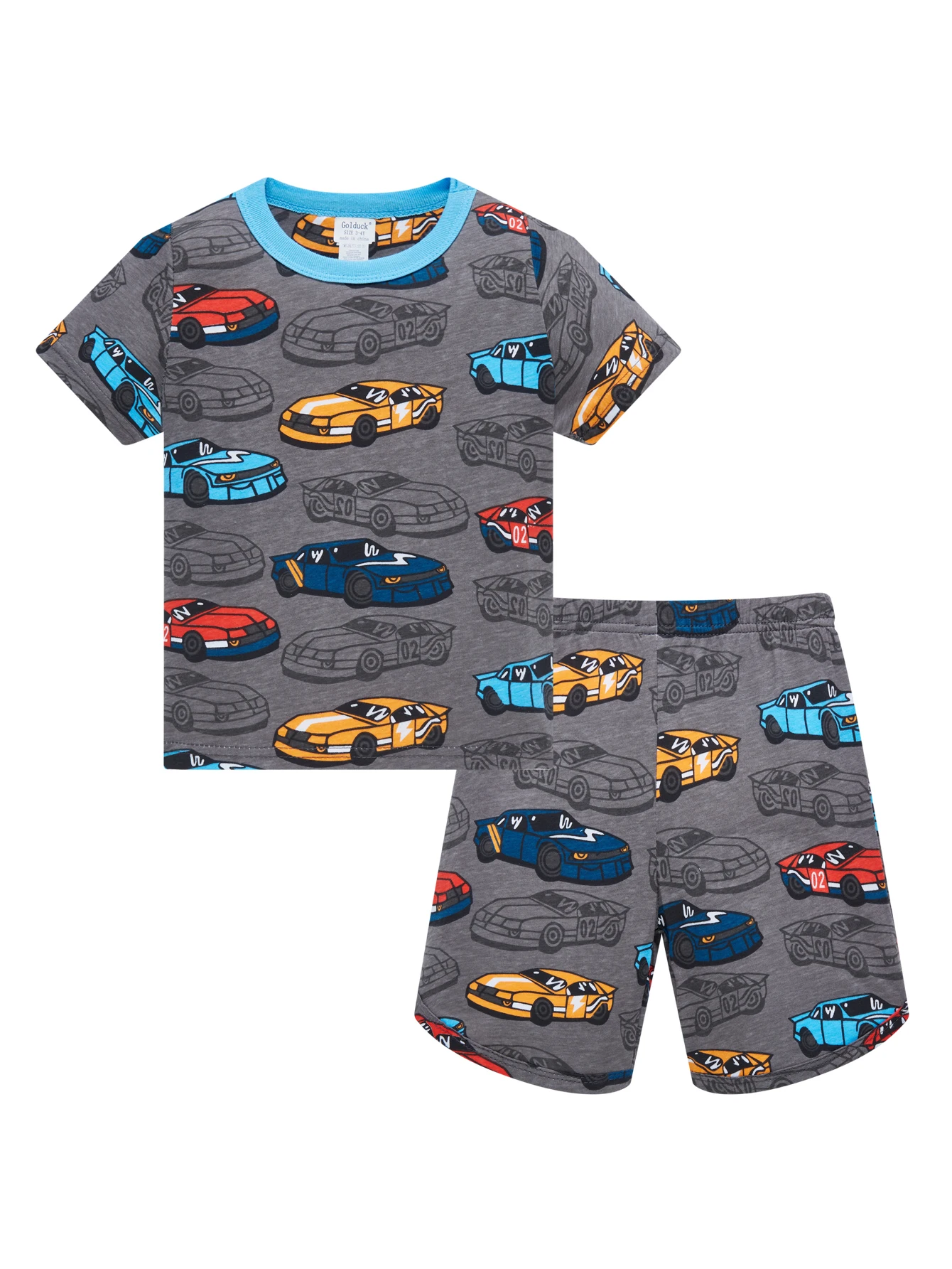 Summer Car Full Print Pajamas Set for Boys Short Sleeve Shorts 100% Cotton Soft Breathable Pjs Kids Sleepwear Age 1-8 Years 2PC