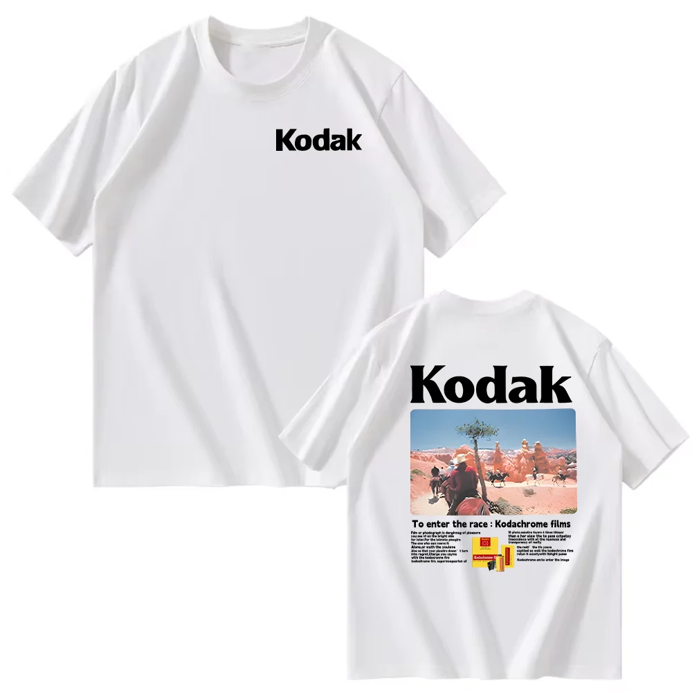 Kodak Summer Brand Beautiful Scenery Print 100% Cotton Men's T-shirt Daily Street Casual Sweat-absorbing Breathable Short Sleeve