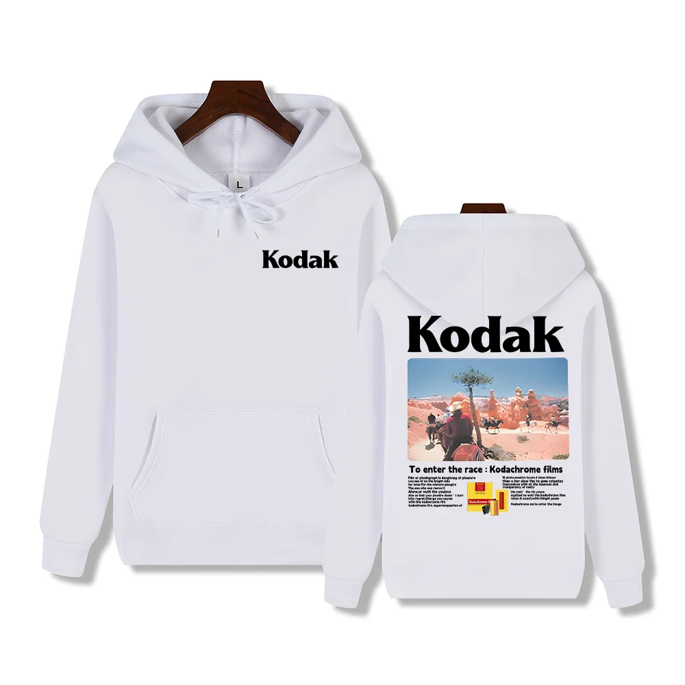 Kodak Brand Fashion Scenery Hip Hop Y2K Print Autumn Winter Street Wear Daily Outdoor Sports Competition Warm Casual Men Hoodie