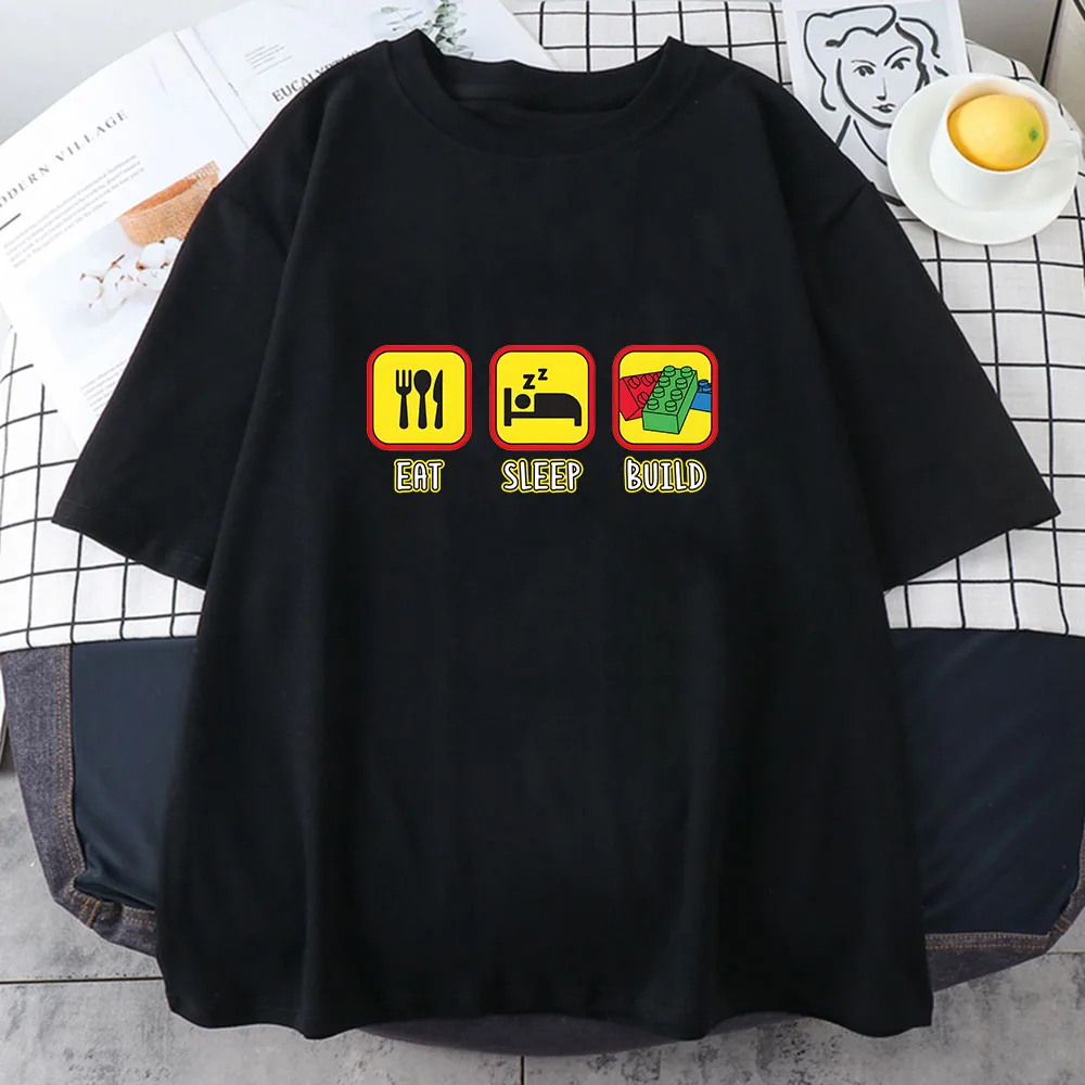 Space Lego T-shirt Building Block Cartoon Print 100%cotton Tee-shirt Funko Pop Casual Tshirt Camisetas O-neck Tees Comfortable