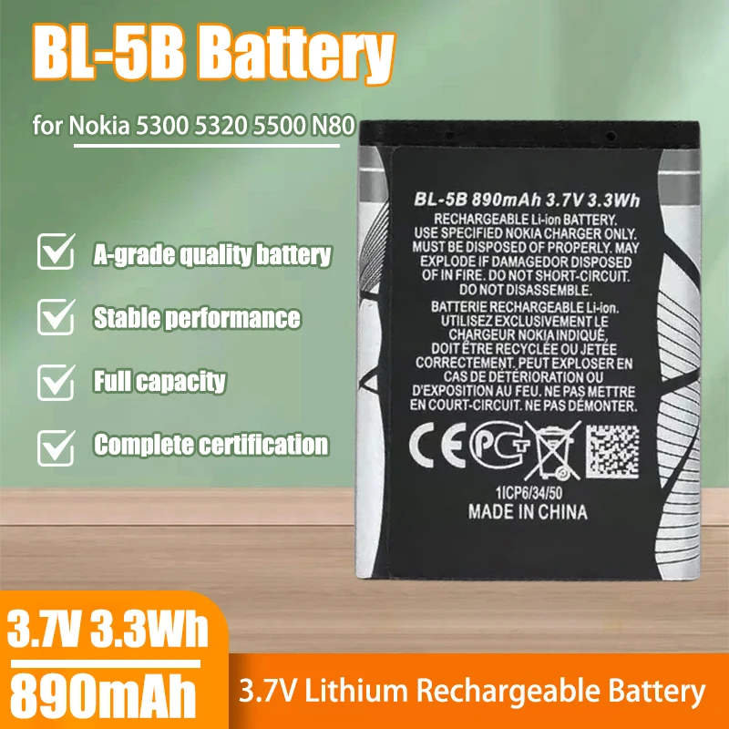 3.7V 890mAh BL-5B Lithium Battery Batteries for Nokia 5300 5320 5500 N80 N90 7360 3230 5070 3220 6120c Mobile Phone Bl5b Cell