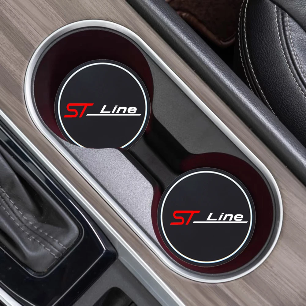2Pcs Non-slip Car Water Cup Pad Diamond Rhinestone Rubber Mat ST Line Emblem For Ford Kuga MK3 MK2 MK4 S Max Focus Puma Fiesta
