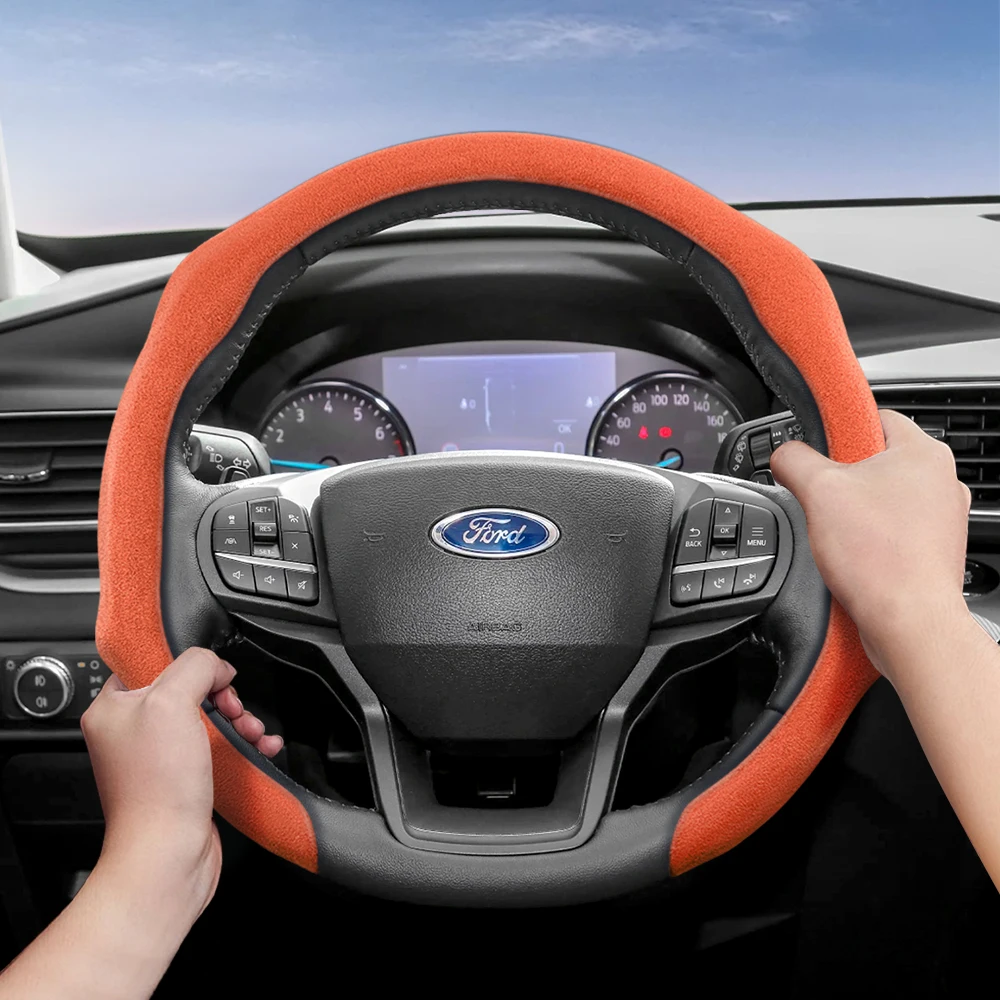 Suitable for Ford Premium Suede Snap-On Steering Wheel Cover, Non-Slip and Durable, Round and D-Shaped Steering Wheel Available Focus Mk2 Mk3 Fiesta Mk7 Transit Custom Mondeo Mk4 Ranger Kuga Mk8 Puma