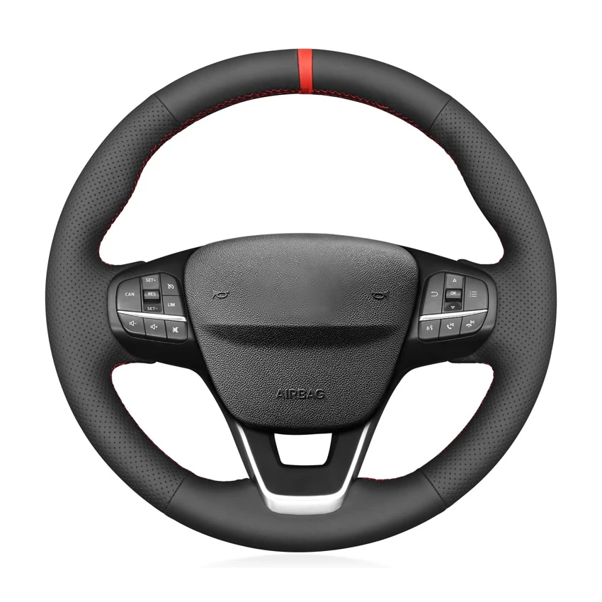 Black Faux Leather Steering Wheel Cover For Ford Focus Kuga Puma Bronco Fiesta Escape Tourneo Transit Custom Maverick 2017-2024