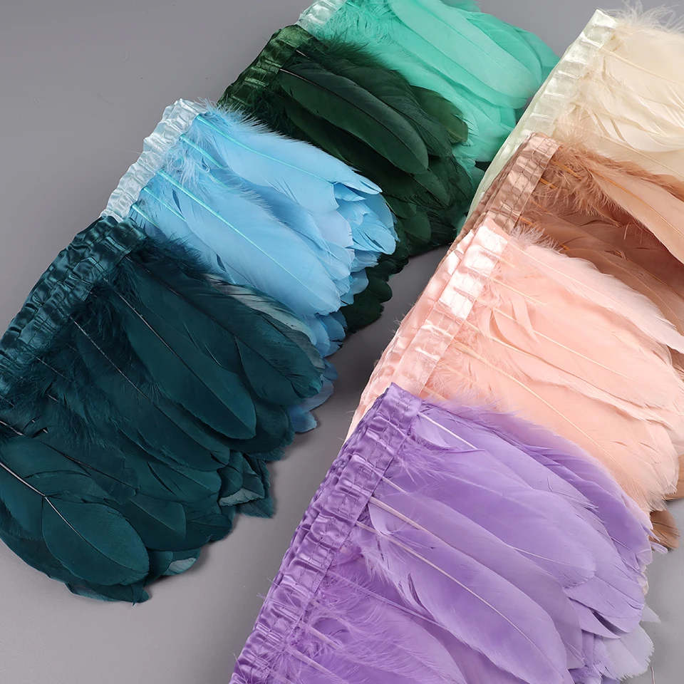 2M Natural Dyed Goose Feather Trims Real Geese Duck Feathers Fringe Ribbons for Handmade Crafts Pumas Wedding Accessories