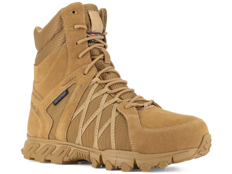 Reebok Trailgrip Tactical Military Composite Toe - Men's Medium Coyote 9 690774480186. A MicroWeb lacing system keeps your foot locked in with lateral stability. The MemoryTech footbed adapts to the contours of your foot. The composite toe meets or...  Read more