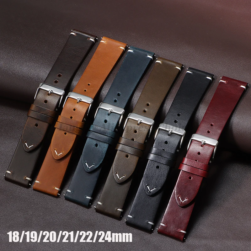 Retro Oil Wax Genuine Leather Watchband Quick Release Calfskin Strap for Seiko for Rolex 18mm 19mm 20mm 21mm 22mm 24mm Wristband  Read more