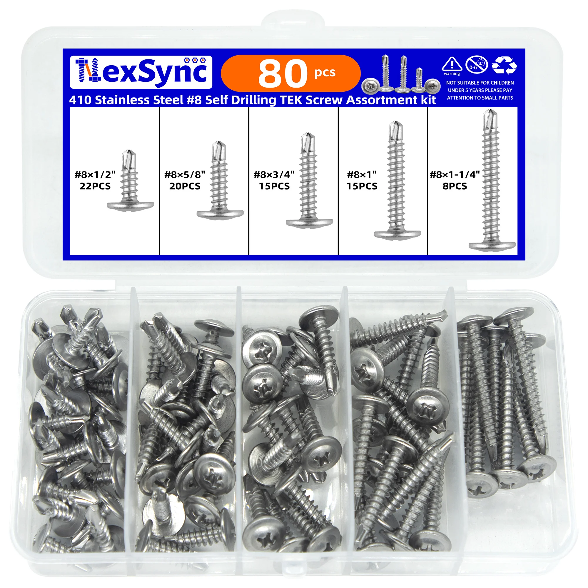 #8 Modified Truss Head Sheet Metal Screws Assortment Kit 410 Stainless Steel Self Tapping Drilling Screws for Metal Plastic Wood