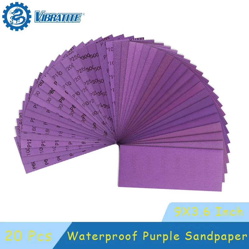 20Pcs 9X3.6Inch Wet Dry Sandpaper Waterproof Purple Sanding Sheet for Wood Furniture Automotive Car Woodworking Metal Polishing