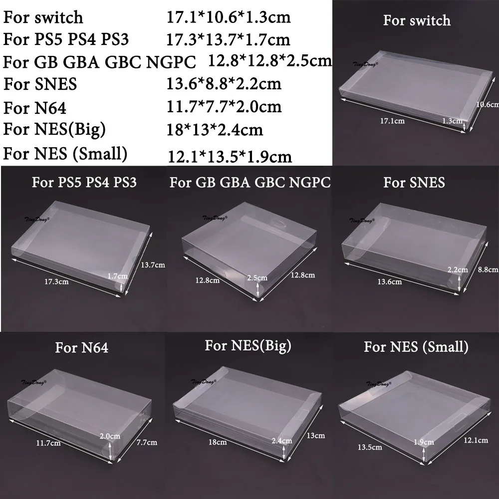 Plastic PET for NES Protector Case for Nintend Game Boxes Clear Transparent for GB GBA GBC SNES N64 NGPC Game Box CIB games