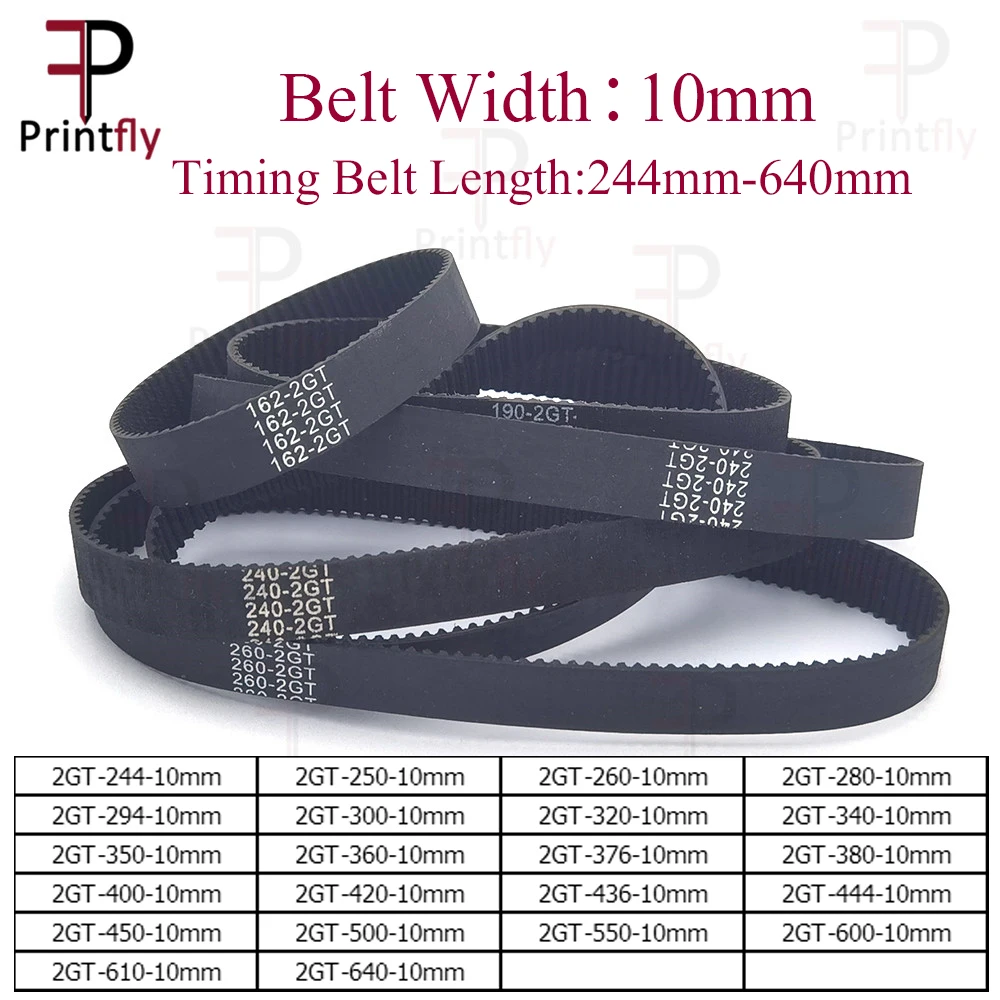 Printfly 2GT/GT2 Timing Belt Width 10mm 244 250 260 280 294 300 320 340 350 360 376 380 400 420 436 444 450 500 550 600 610 640