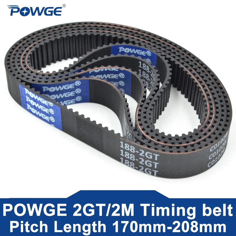 POWGE 2M 2GT Timing Belt Lp=170 172 174 176 178 180 182 184 186 188 190 192 194 196 198 200 202 204 206 208 Width 6/9mm Rubber
