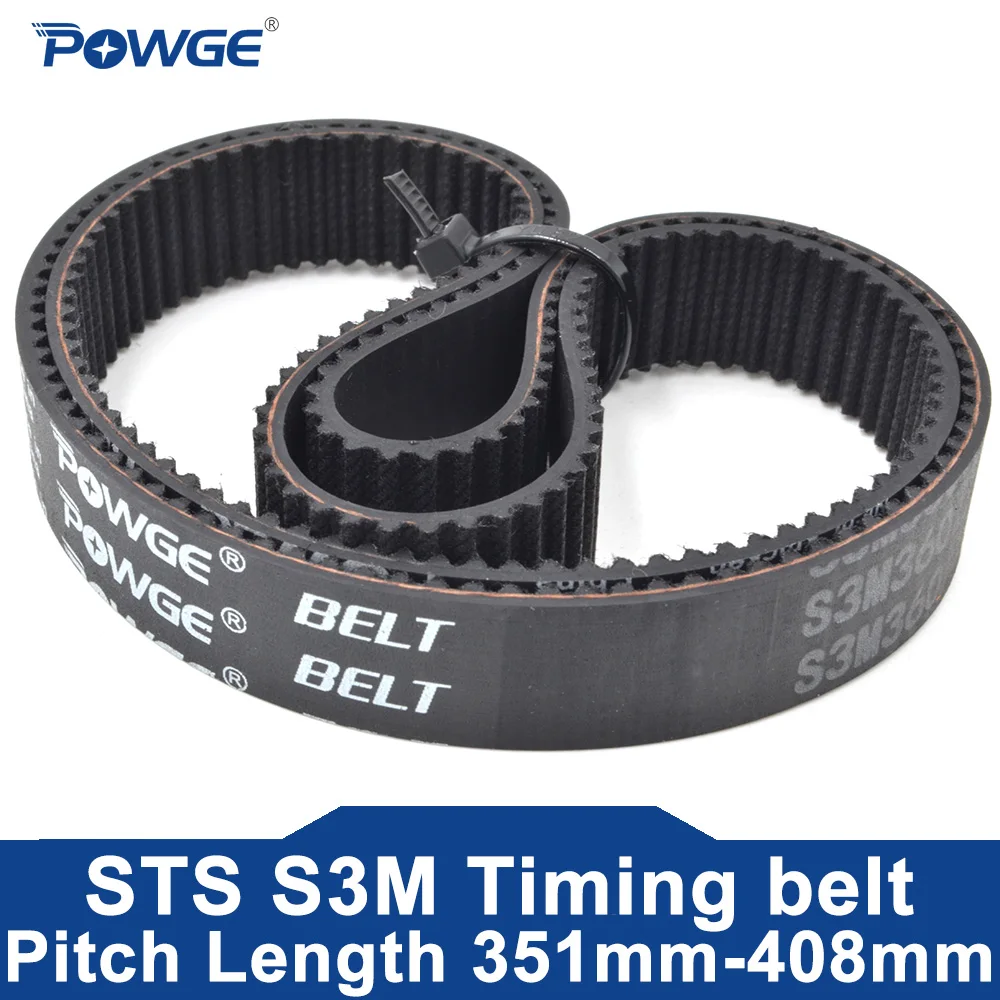 POWGE STD S3M Timing belt Lp=351 354 357 360 363 366 369 372 375 378 381 384 387 390 393 396 399 402 405 408 Width 6-25mm Rubber