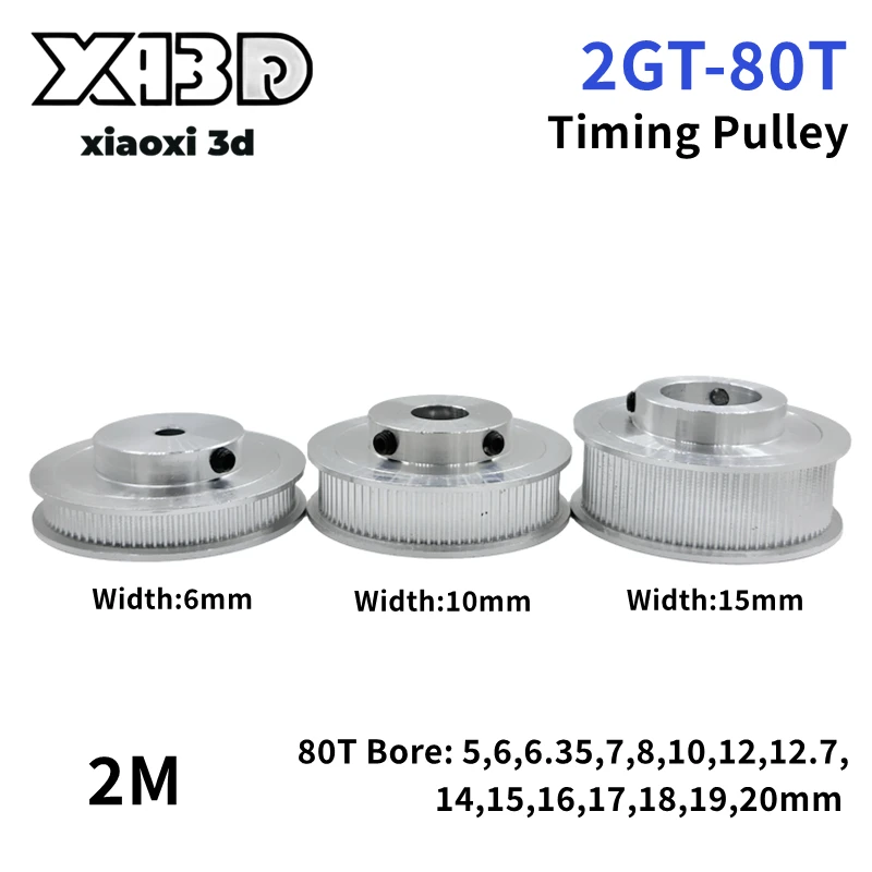 2GT Timing Pulley 80 Teeth Bore 5/6/6.35/7/8/10/12/12.7/14/15/16/20mm Belt Width 6/10/15mm 3D Printer GT2 80T Timing Belt Pulley
