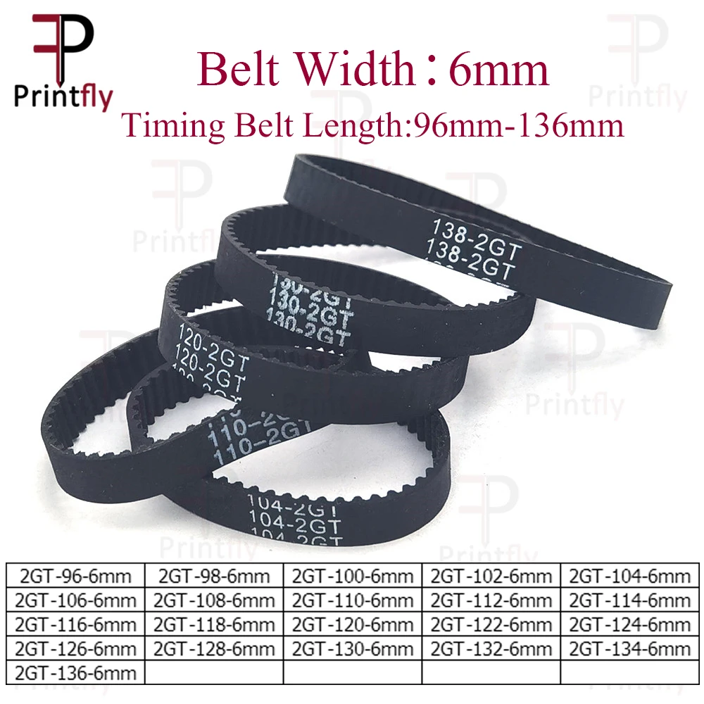 Printfly 2GT/GT2 Timing Belt 96 98 100 102 104 106 108 110 112 114 116 118 120 122 124 126 128 130 132 134 136 Belt Width 6mm