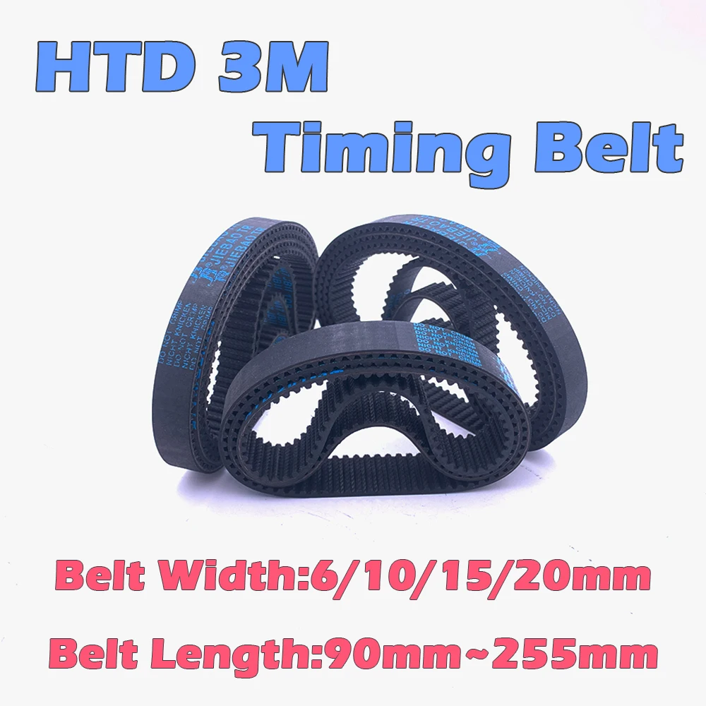 Belt Perimeter 90mm To 255mm HTD 3M Timing Belt Closed Loop Rubber Belt Width 6 10 15 20mm HTD3M Synchronous Belt 3M Rubber Belt