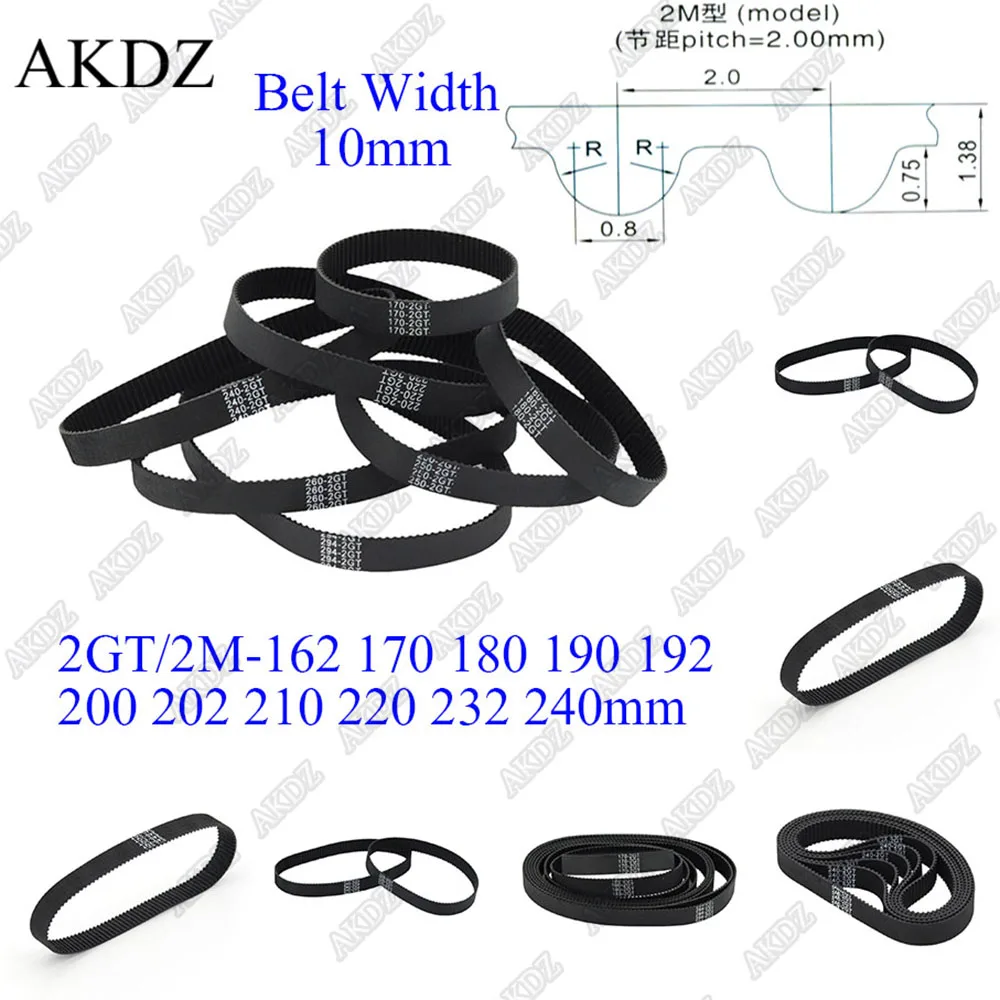 2MGT 2M 2GT Synchronous Timing belt Pitch length 162 170 180 190 192 200 202 210 220 232 240 width 10mm Rubber closed