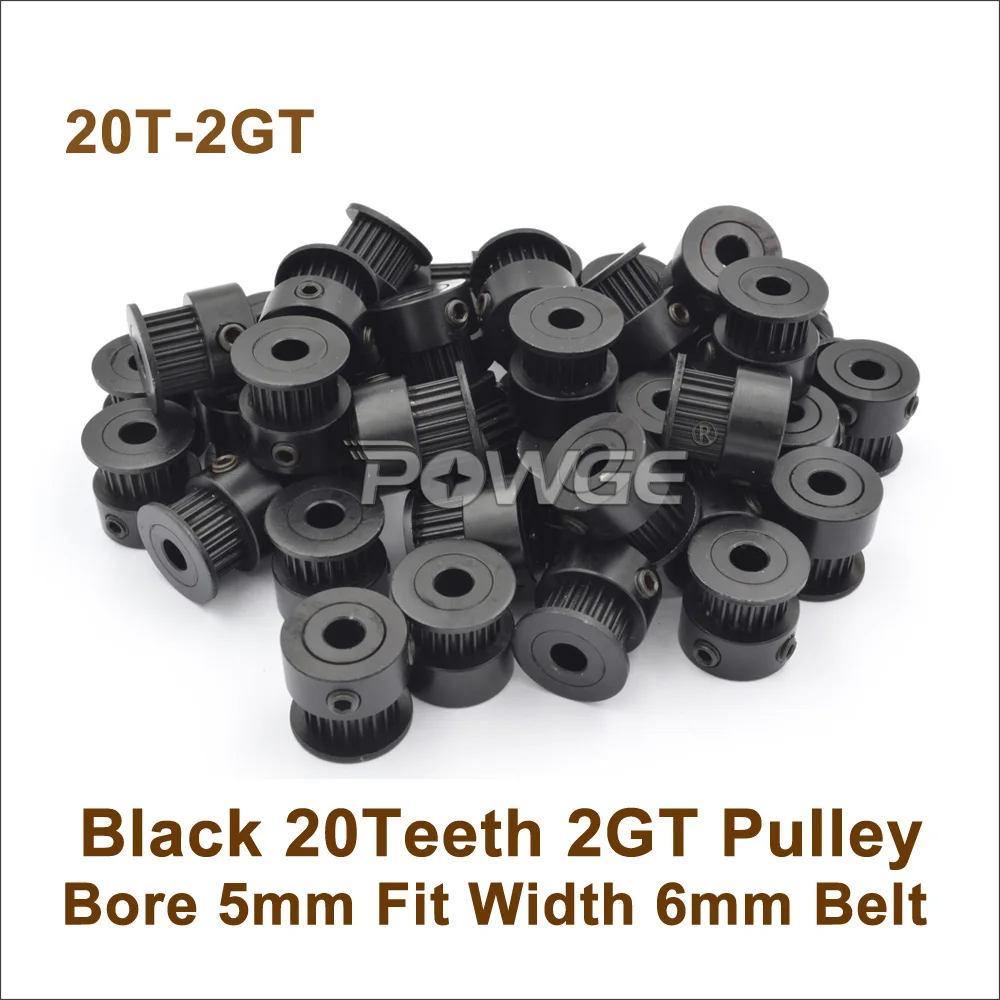 POWGE Black Red Sliver Anodizing 20 Teeth 2GT Synchronous Pulley Bore 5mm Fit W=6/10mm 20T 20Teeth 2MGT GT2 Timing Belt Pulley