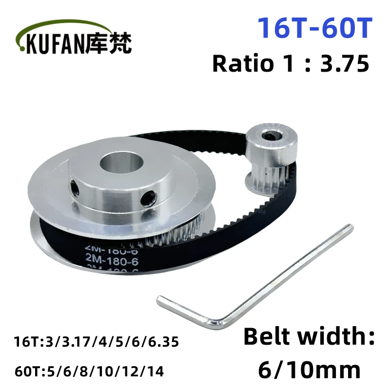 GT2 Timing Belt Pulley 16teeth 2GT 16T-60T Teeth Bore3/5/8/14mm Reduction1:3.75 Belt Width 6/10mm for 3D printer DIY accessories