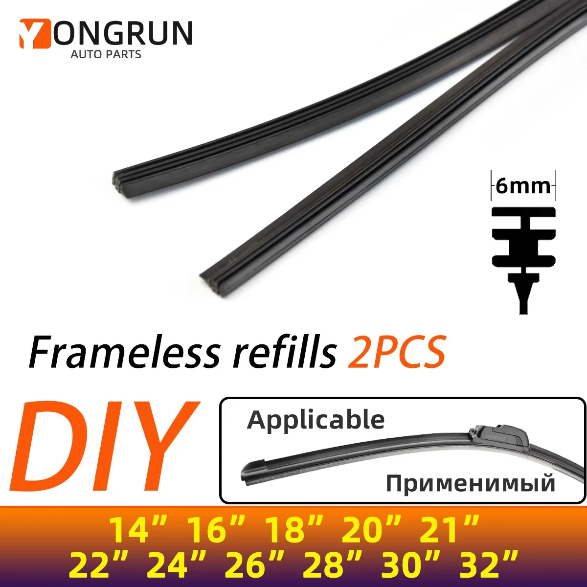 2PCS 6mm Car Windshield Wiper Blade Replacement Strip Boneless Rubber Frameless Wiper Rubber Strip Accessories 26 "28" 30 "32"