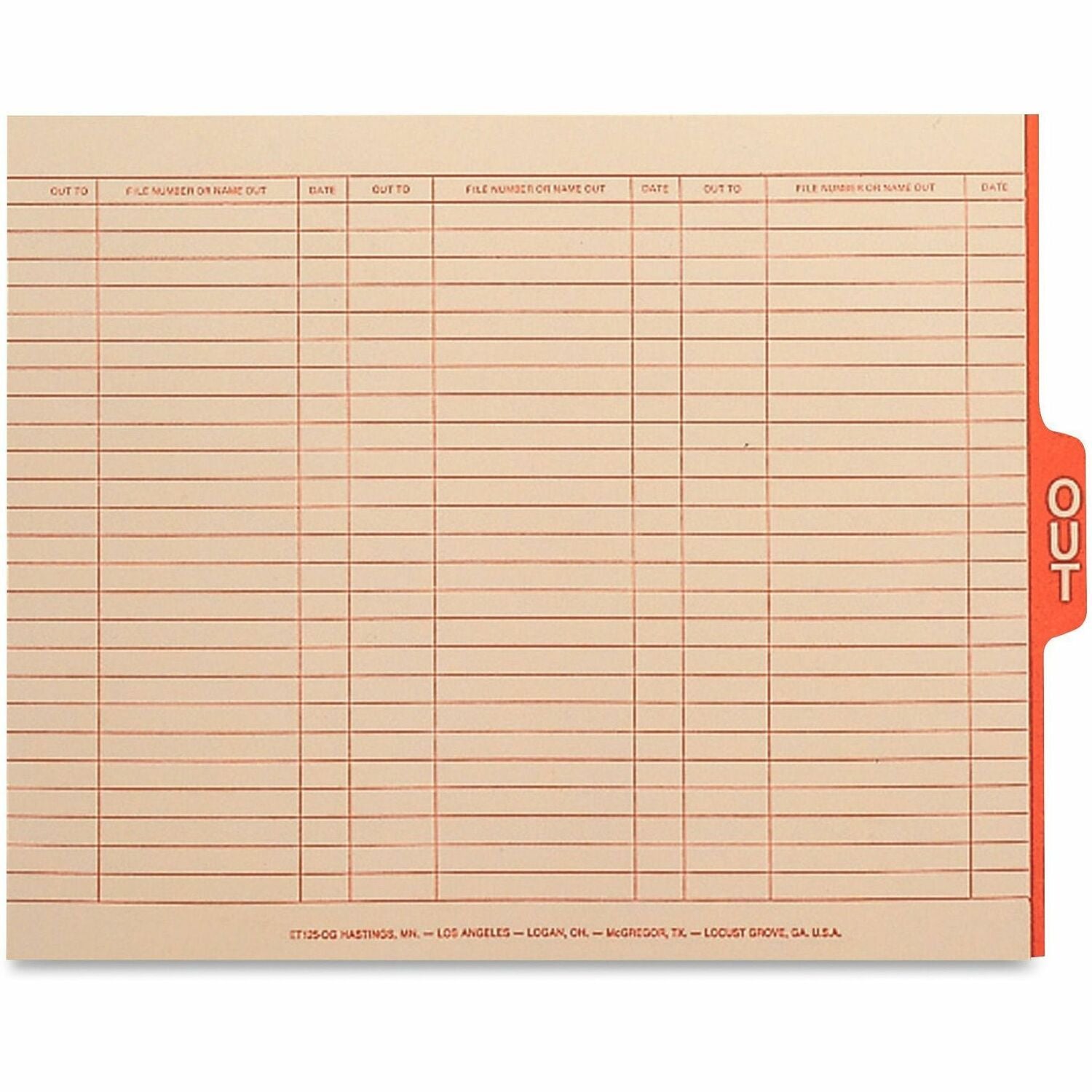 Flag out where folders have been removed by inserting these efficient out guides. Preprinted charge-out forms on both sides offer space to indicate file taken, date taken and by whom. Space for 150 entries. Center tab printed “OUT” on both sides....  Read more