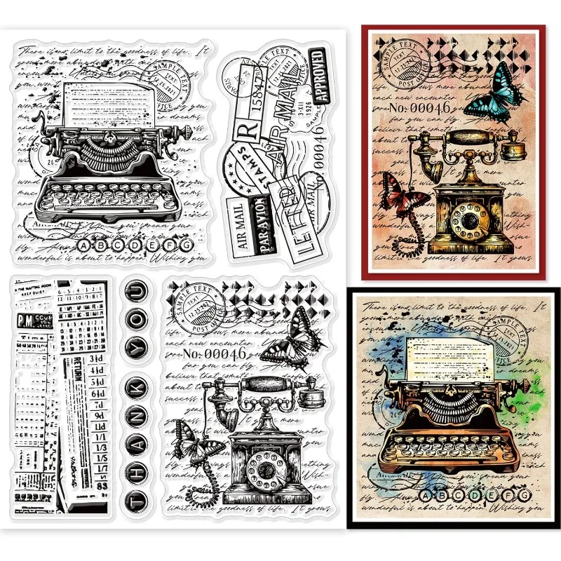 1Sheet Retro Typewriter Background Clear Stamps for Cards Making Vintage Telephone Background Silicone Clear Stamp Seals