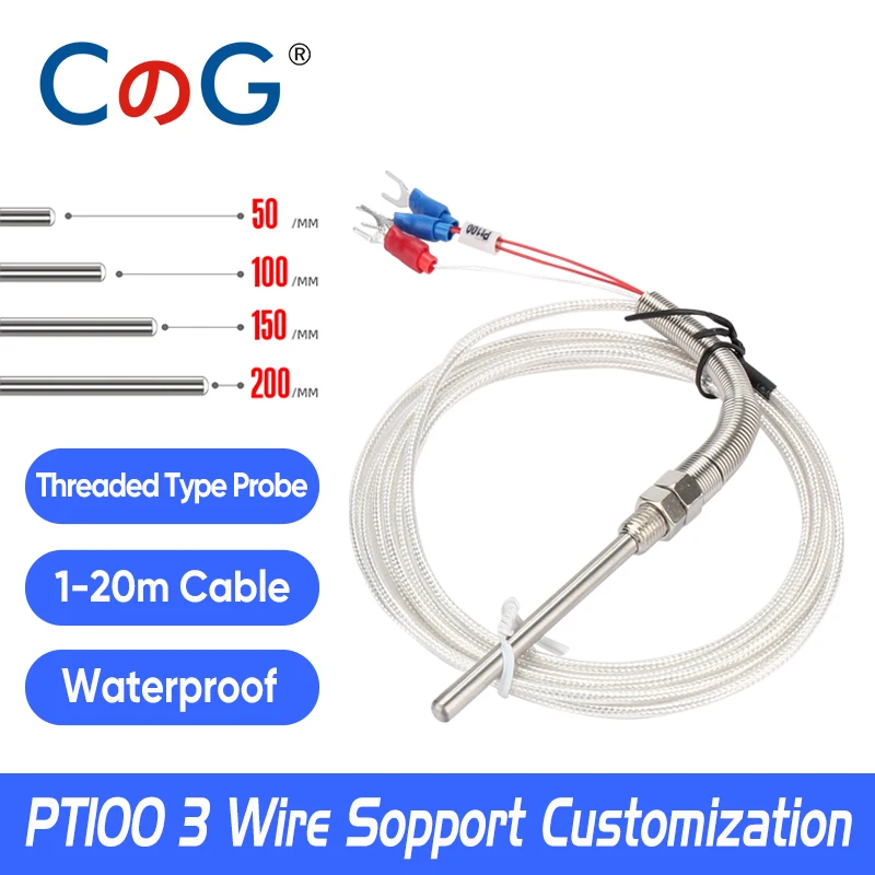CG WZPT-03 PT100 M8 Threaded Type Probe Temperature Sensor Thermocouple with 1/2/3/5m Waterproof High Precision 3 Wire Cable  Read more
