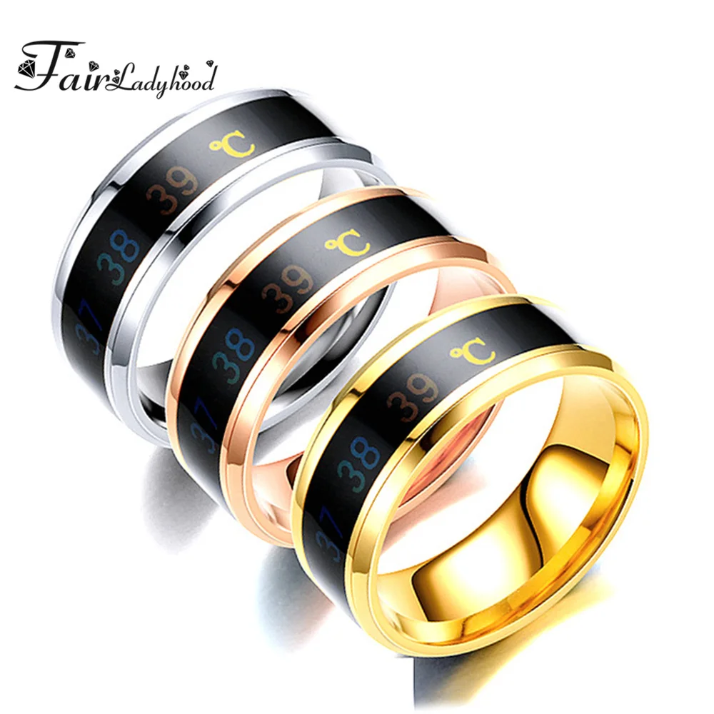 FairLadyHood Black Silver Color Gold Rose Blue Color Intelligent Thermometer Temperature Men Women 316L Stainless Steel Couple