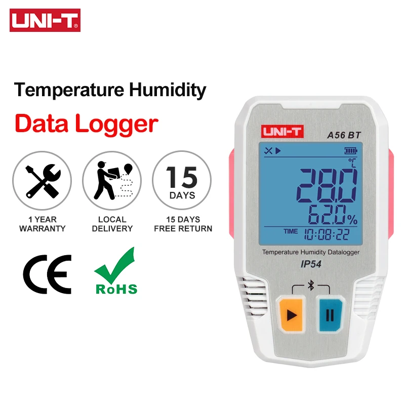 UNI-T Temperature Humidity Data Logger A56 BT Bluetooth Digital Food Thermometer Hygrometer A57 BT 64000 Sets Data Storage IP54  Read more