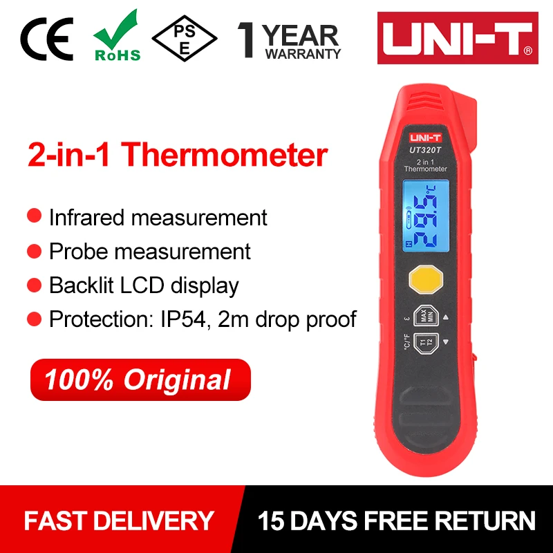 UNI-T Digital Thermometer UT320T 2-in-1 High Accuracy Temperature Meter Infrared And Probe Measurement IP54  Read more