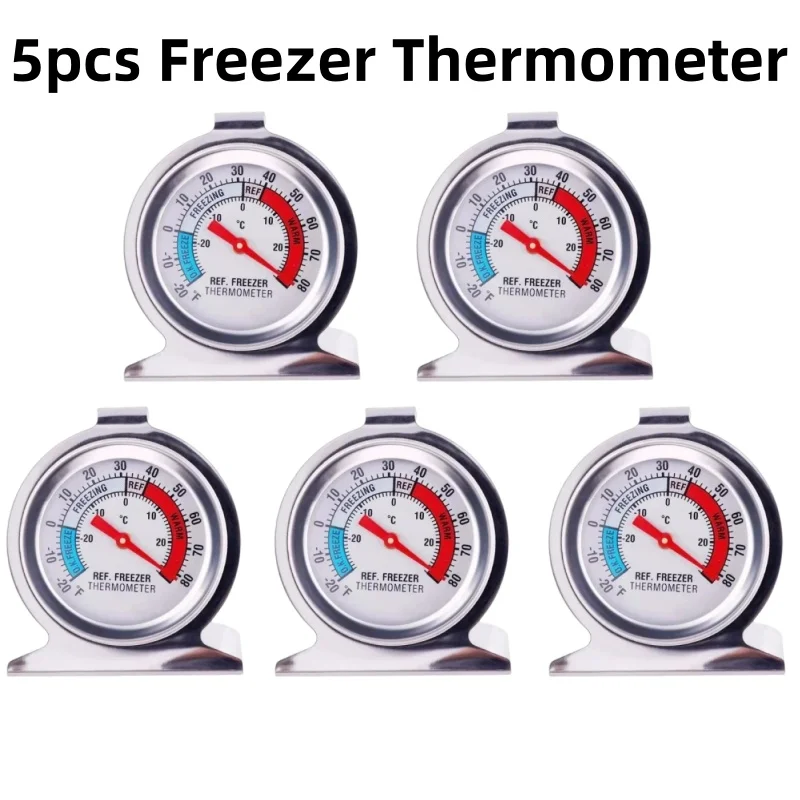 5pcs Freezer Thermometer for Refrigerator Stainless Steel Large Dial Red Indicator Accurate Temperature for Fridge Cooler New