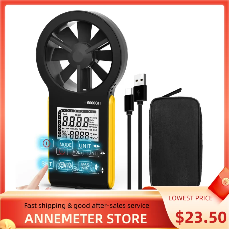 Rechargeable Anemometer Handheld, Digital Smart Touch Wind Speed Meter, Portable CFM Wind Speed Gauge for Air Flow Velocity