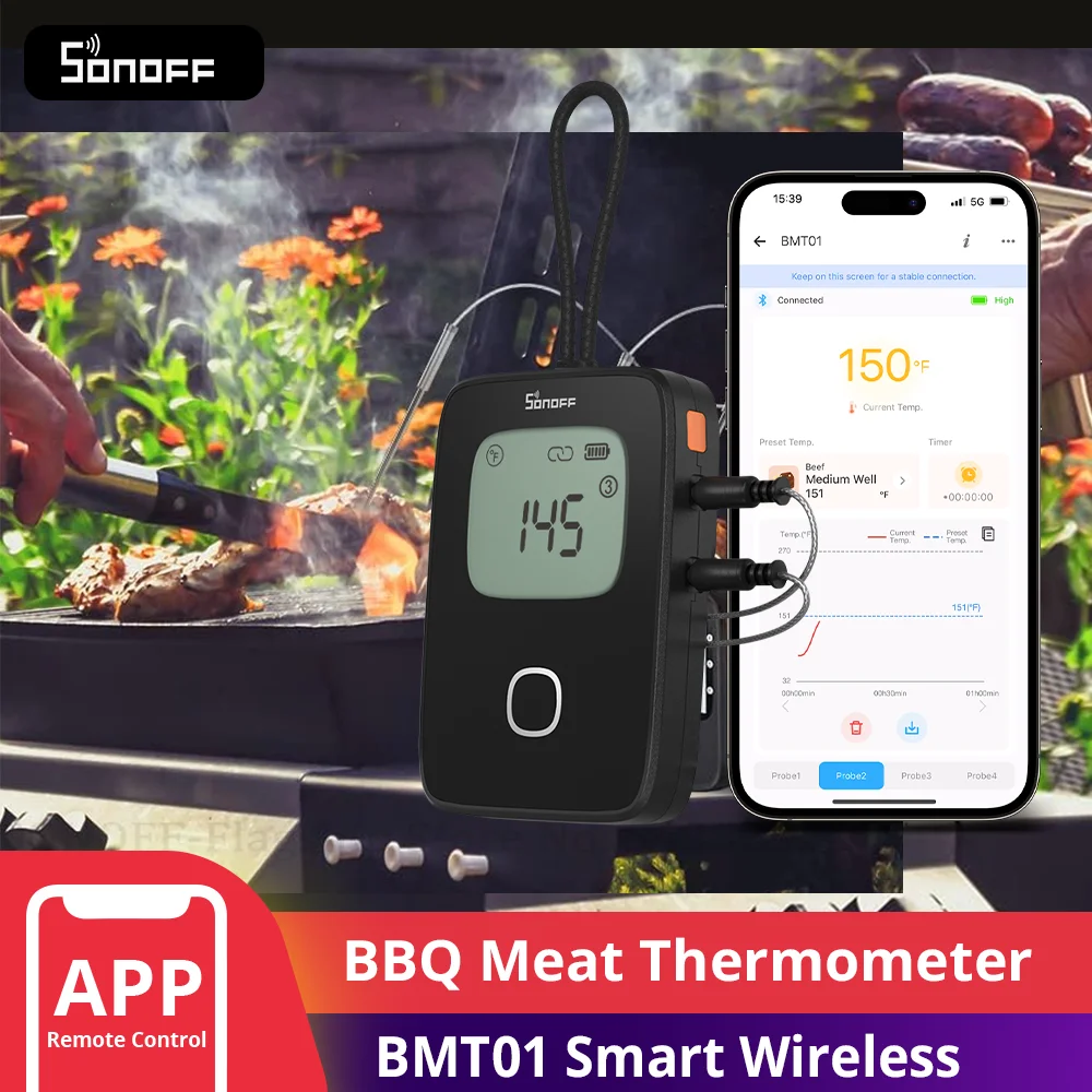 SONOFF BMT01 BBQ Meat Thermometer Wireless Smart Grilling Tool Cooking Temperature Alerts Timer Reminder Temp Chart eWeLink APP