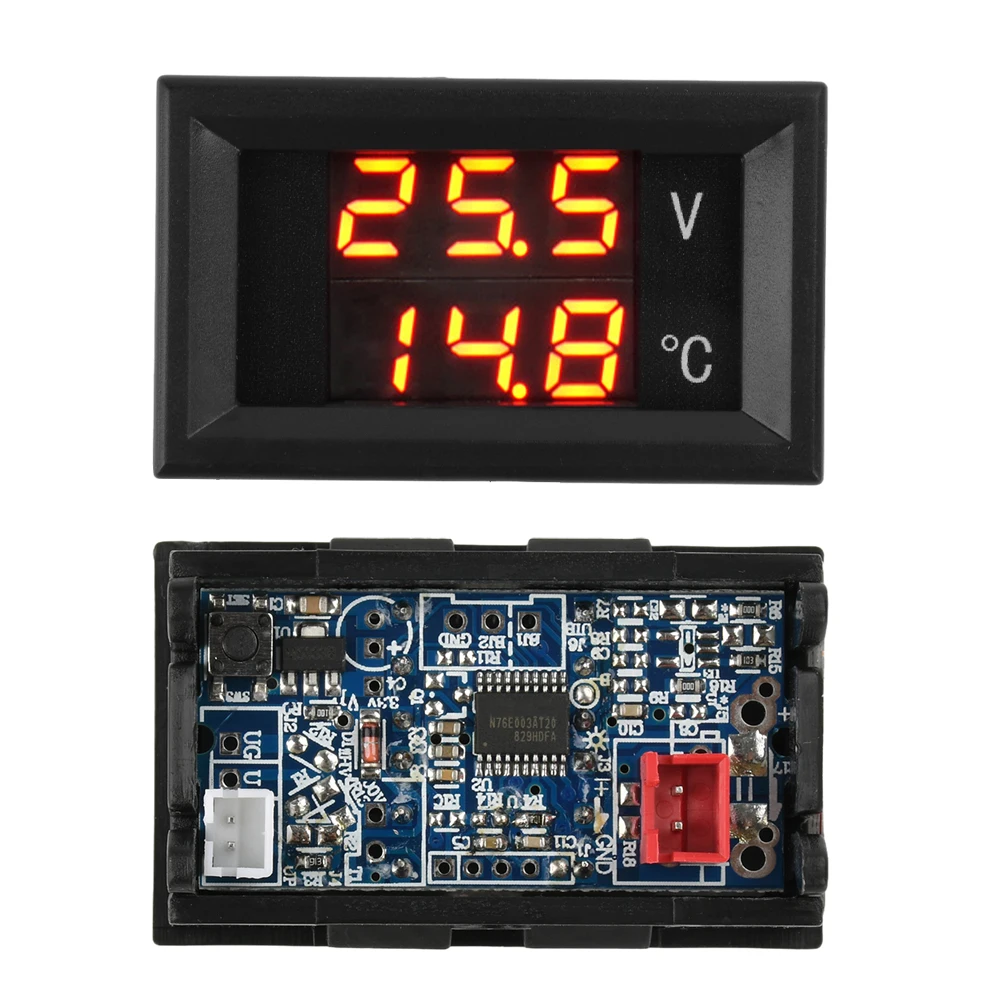 DC 4-28V Voltmeter Thermometer Voltage and Temperature Meter Monitoring LED Digital Display with NTC Probe Cable for Car Tool