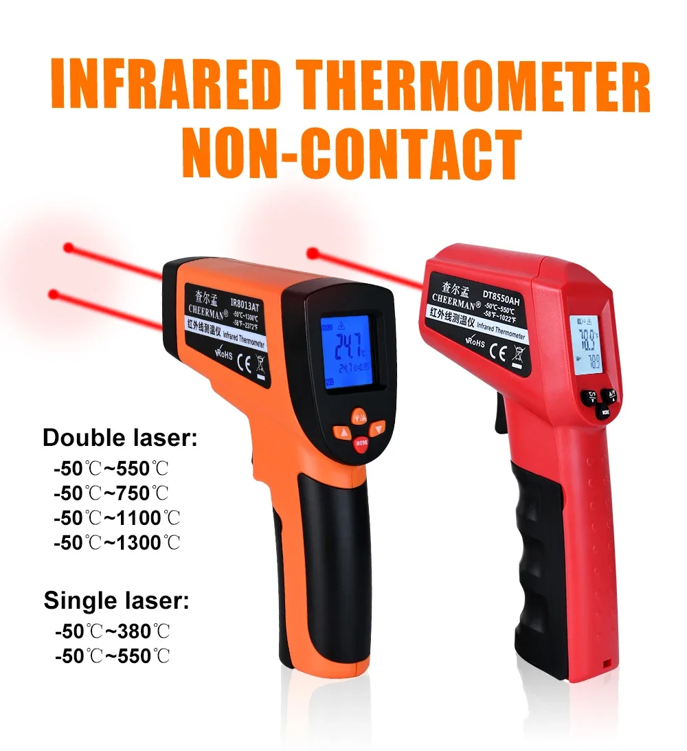 Non-Contact Pyrometer Infrared Thermometer Thermometro LCD IR Laser Digital Temperature Thermometer Gun Pyrometer