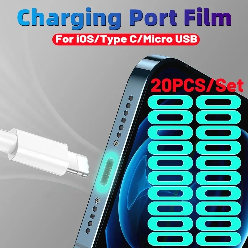 20/10/5Pcs Phone Tablet Charging Port Luminous Protective Film for Ios Type-C Micro USB Universal Protector Fluorescent Stickers  Read more