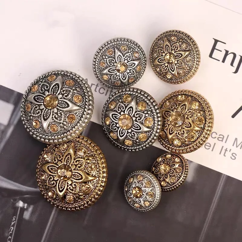 Fashion Plastic Yellow Rhinestone Button Vintage Ladies Knitwear Suit Coat DIY 6PCS/Lot Decorative Round Buttons